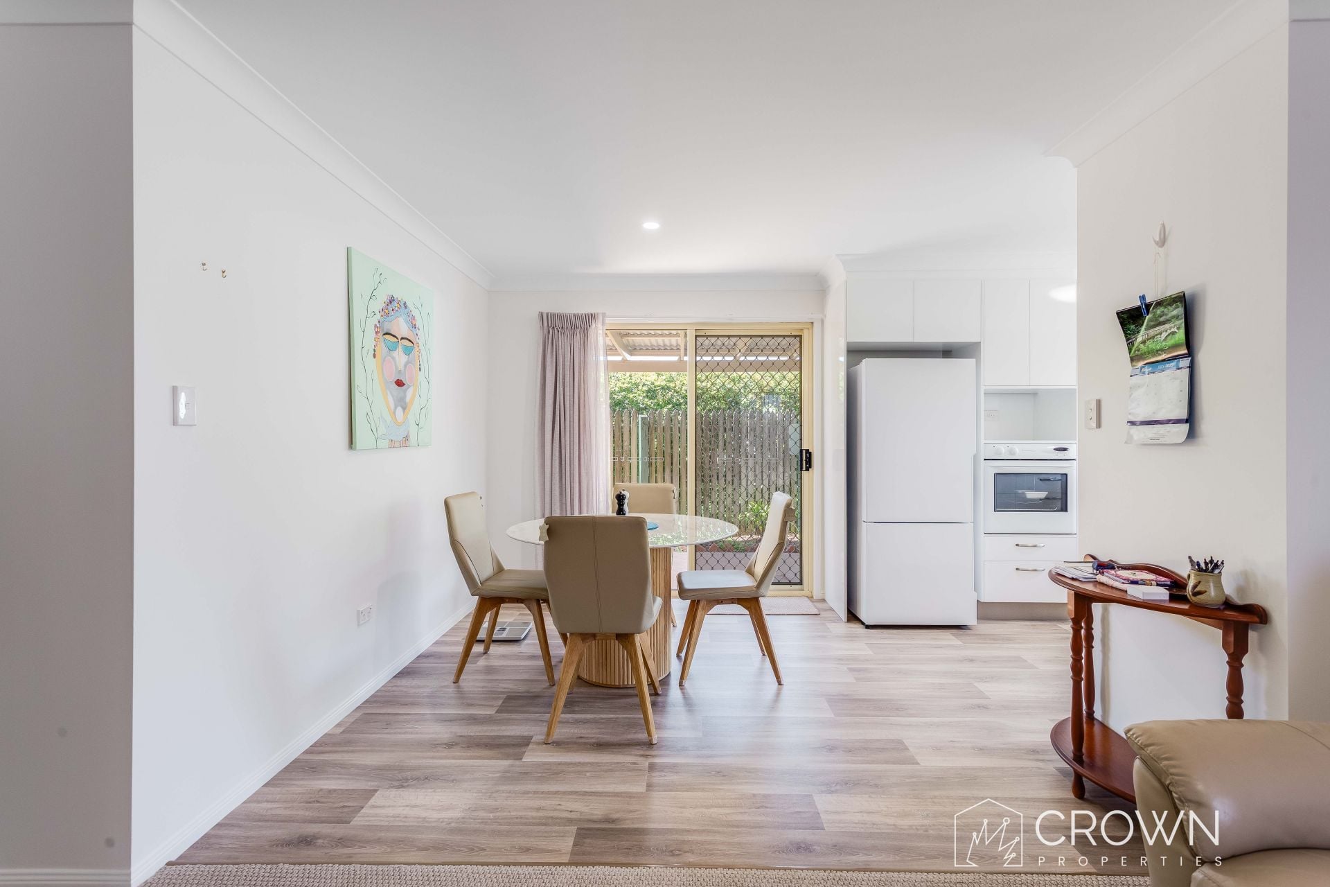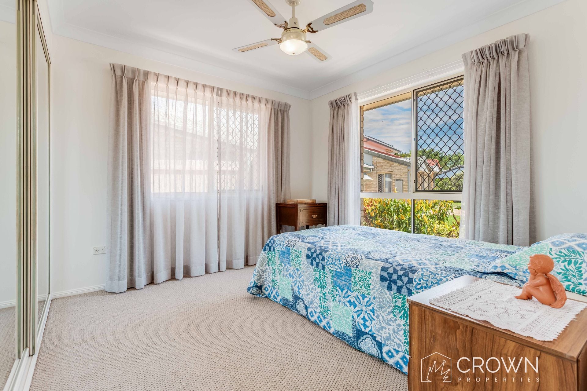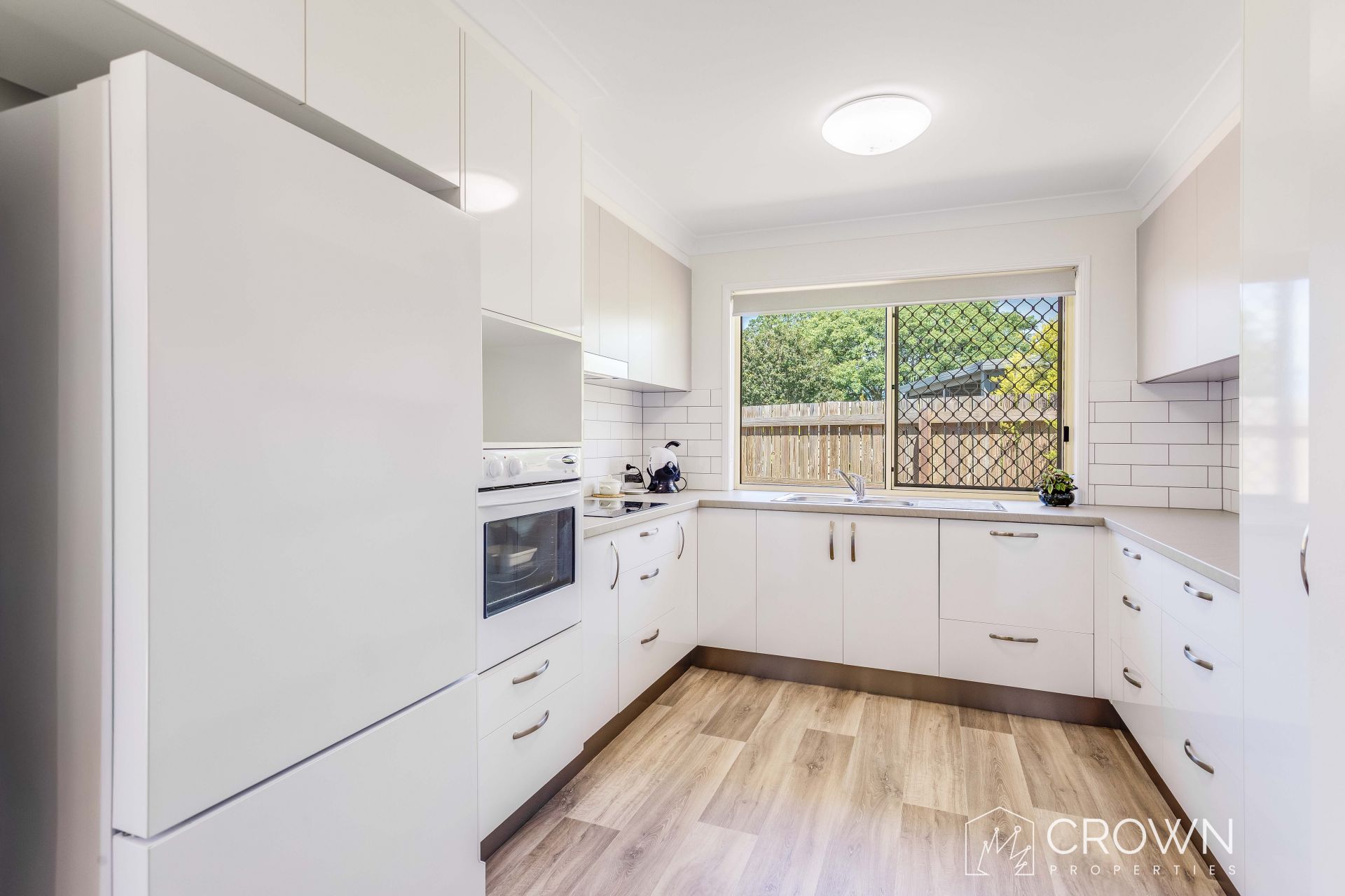 – Stylish flooring, blinds and curtains plus ceiling fans and down lights