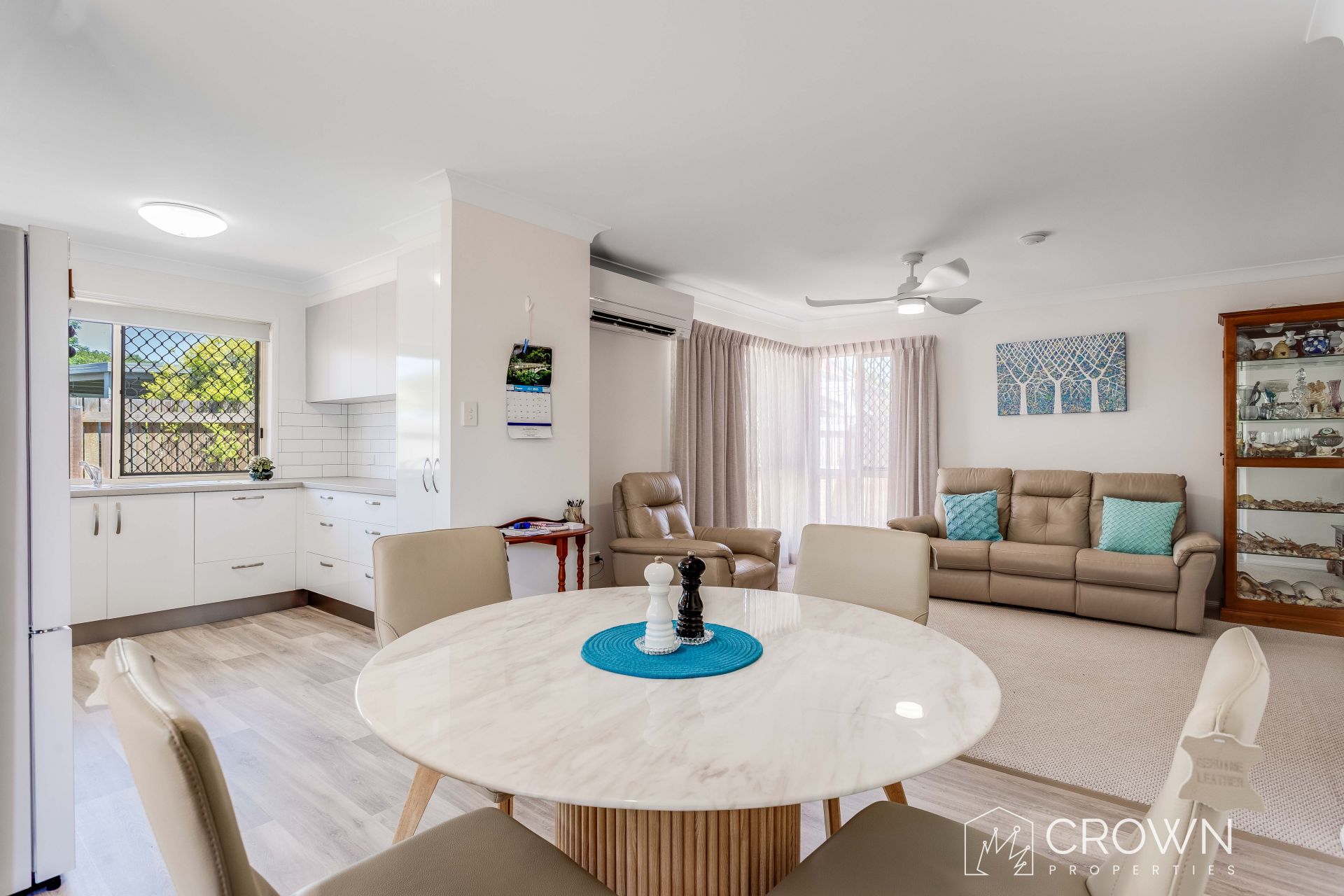 Lovingly transformed over the past four years, this exceptionally spacious villa now showcases a stunning new kitchen complete with an abundance of cupboard space, a dishwasher drawer, and a generous pantry. Fresh, stylish flooring has been installed throughout, complemented by new curtains and blinds. Modern ceiling fans, downlights, and air-conditioning to both the living area and main bedroom ensure all year-round comfort.